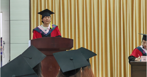 外语学院兼国际教育学院院长张哲华为毕业典礼致辞,与毕业生重温了四年的大学生活,共同见证了伟大祖国的蓬勃发展、携手共渡抗疫等困难时期,在全院师生共同努力下取得了难能可贵的诸多成绩,对大家砥砺奋进、坚忍不拔的学习、生活态度给予了高度肯定,嘱咐毕业生在未来的工作岗位上继续乐观向上、勤奋务实、终身学习、勇毅前行。致辞结束后,张哲华宣读了《关于授予2023届本科毕业生学士学位的决定》。